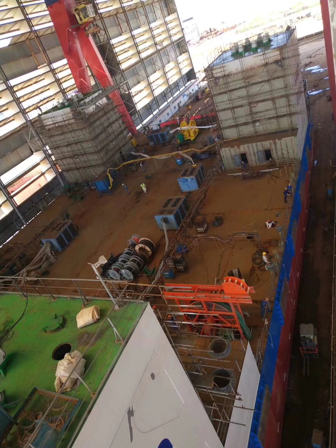 熱烈祝賀由南通豪通船務(wù)在潤(rùn)邦海洋總包主船體搭載工程的“華電穩(wěn)強(qiáng)”號(hào)自升式海上風(fēng)電安裝作業(yè)平臺(tái)于2018年8月28日中午順利下水!